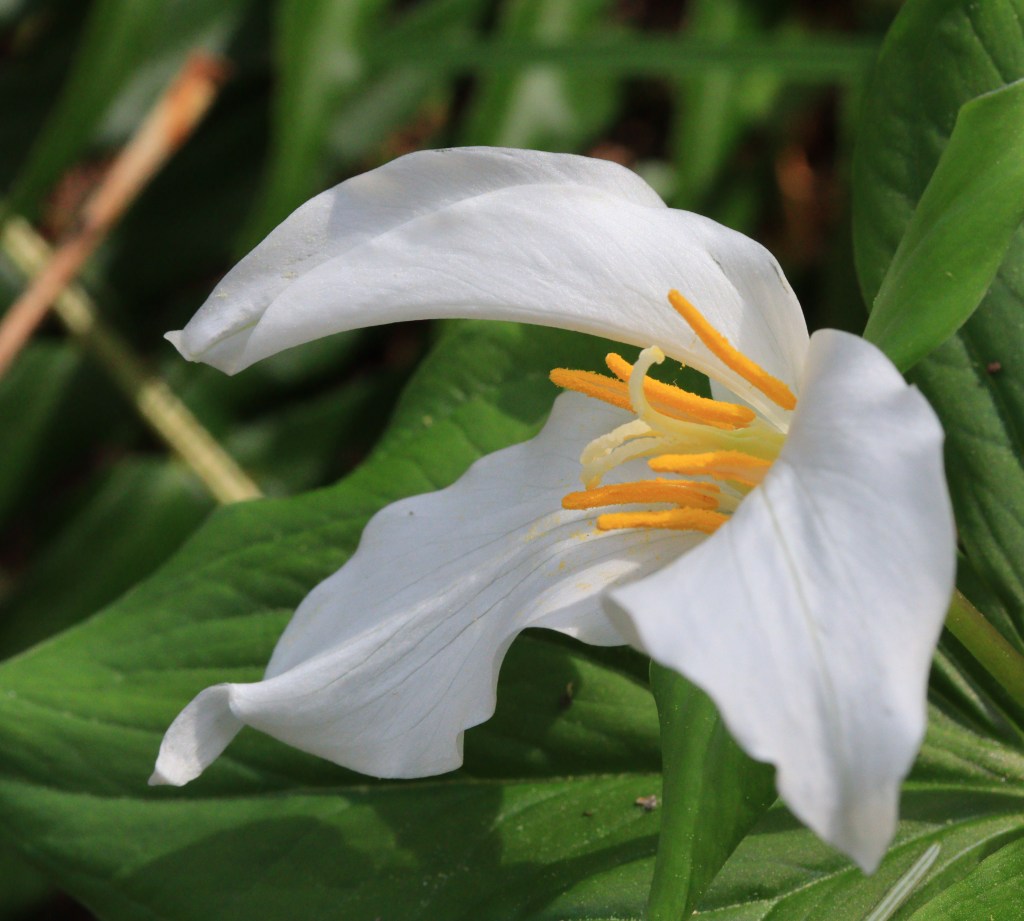 — a perennial herb with 3 triangular oval leaves, blooms for about 3 weeks in Pacific Northwest forests, showing off its 3 large white petals.